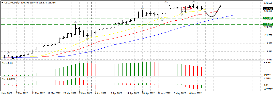Повторный тест 131 фигуры оказался роковым для покупателей гринбек в паре доллар/иена. Цена сумела обновить апрельский максимум текущего года, но укрепиться выше 131.00 не удалось. В итоге продавцам доллара удалось сформировать разворотный бар на продажу с точкой входа у 130.10. На данный момент сигнал в отработке, если цена пробьет поддержку у линий аллигатора на дневном таймфрейме, ждем развития нисходящей коррекции в направлении диапазона 127.00-125.00. Сегодня стоит ожидать всплеска волатильности по паре. В 15:30 по МСК будут опубликованы данные по апрельскому показателю индекса потребительских цен в США. Аналитики предполагают рост индекса, что в свою очередь может помешать развитию нисходящего отката по usd/jpy...ЧИТАЙТЕ ПРОДОЛЖЕНИЕ В БЛОГЕ КОМПАНИИ