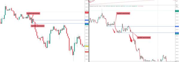 Триггер — закрытие свечи M1 или M5 за пределами уровня. Это исключает ложные пробои и повышает вероятность продолжения движения.