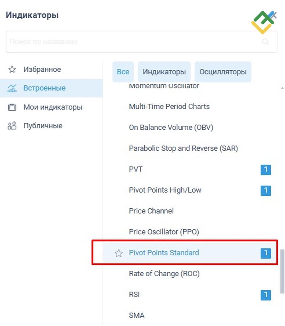 В браузерной платформе LiteFinance инструмент уже интегрирован в качестве базового. На графике выбираете «Индикаторы/Встроенные» — Pivot Points Standard.