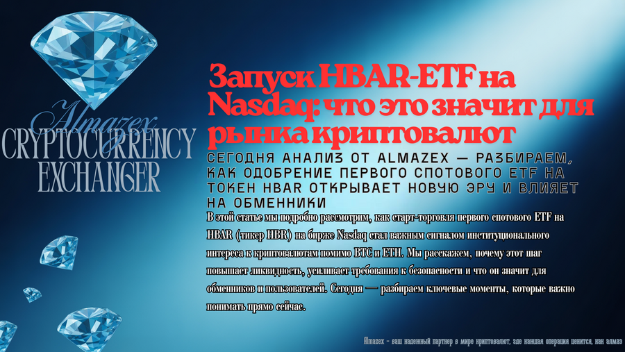 $30 NO DEPOSIT BONUS💎 Almazex — Крипторынок реагирует: запуск ETF на HBAR и новые ориентиры для обменников