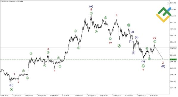 Прогноз по Эфириуму (ETHUSD): завершение коррекции в рамках крупного зигзага