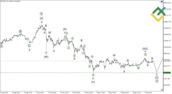 Краткосрочный прогноз криптовалют: волновой анализ BTCUSD, XRPUSD и ETHUSD на 13 января 2026