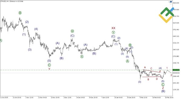 Прогноз криптовалют BTC, ETH и XRP на 27.02.2026: волновой анализ и сигналы для входа