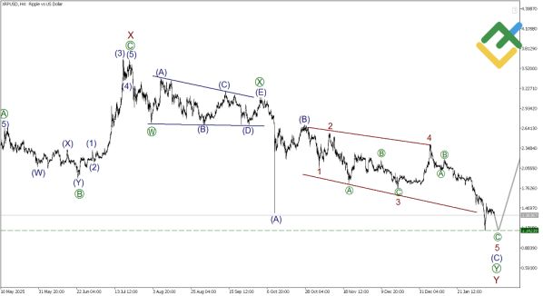 - XRPUSD — конечный диагональник в подволне (C) of [Y] коррекции (4), цель — 1.142.