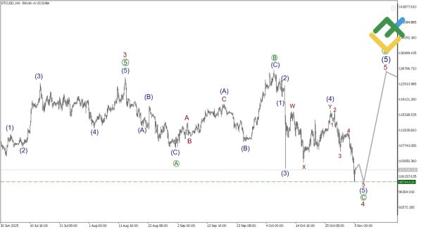 Рынок криптовалют остаётся в фазе коррекции на фоне макроэкономической неопределённости и изменений в регуляторной политике. На 5 ноября 2025 года трейдеры продолжают ориентироваться на классические методы технического анализа, в частности — на волновую теорию Ральфа Нельсона Эллиотта. В этом материале мы разбираем структуру текущих ценовых движений по трём ключевым активам: BTCUSD, ETHUSD и XRPUSD, предлагая обоснованные торговые сигналы на основе корректной волновой разметки.
