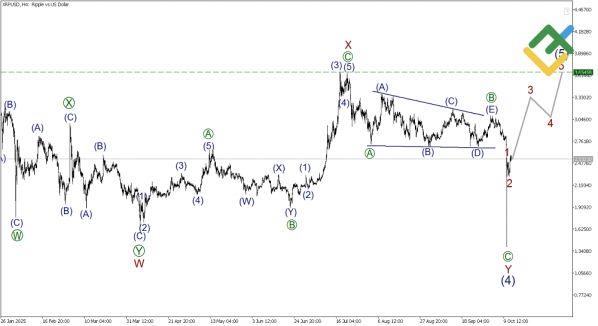 Актуальный сигнал: длинные позиции (Buy 2.532, TP: 3.654). Волновая структура указывает на возможность достижения новых локальных максимумов.