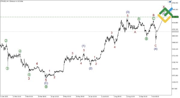 Ethereum находится в стадии формирования волн двойного зигзага и завершает импульс [C].