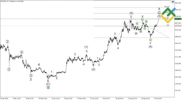 ETHUSD: Развитие завершающей бычьей волны. Сделки на покупку стоит ориентировать на тейк-профит в районе 4910.16.