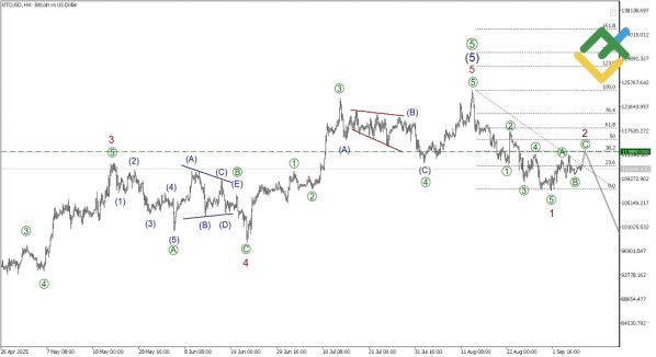 BTCUSD: ожидается рост в коррекции 2 в направлении уровня 113 880,00. Рекомендуется открывать сделки на покупку.