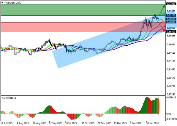 По состоянию на 17 февраля 2026 года валютная пара AUD/USD демонстрирует боковую коррекцию, удерживаясь вблизи отметки 0.7064. Поддержку американской валюте оказывает стабильный спрос на доллар США, что ограничивает потенциал роста австралийского доллара.