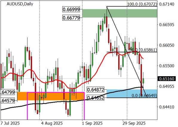 Впрочем, наметился и потенциальный позитивный фактор. Президент Дональд Трамп заявил о готовности к заключению сделки, способной смягчить торговую напряженность. Он отметил, что ужесточение контроля над экспортом редкоземельных металлов и товаров, произведенных с использованием китайских материалов, введенное 9 октября, стало серьезным препятствием для диалога с лидером КНР Си Цзиньпином. Любые признаки прогресса на переговорах способны ослабить позиции доллара и дать импульс для возобновления восходящего тренда по паре AUD/USD.