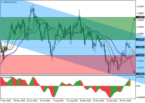 Основные уровни сопротивления, на которые ориентируются трейдеры, проходят в области 1.3390 и 1.3640, тогда как ближайшие значимые зоны поддержки находятся примерно на 1.3210 и 1.3000. Именно эти отметки используются для построения торговых сценариев и размещения отложенных ордеров.