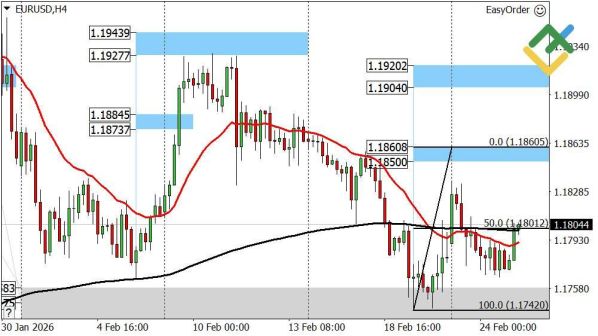Если зона будет удержана покупателями, возможна коррекция к сопротивлению A 1.1860–1.1850. После теста области приоритет — продажи.