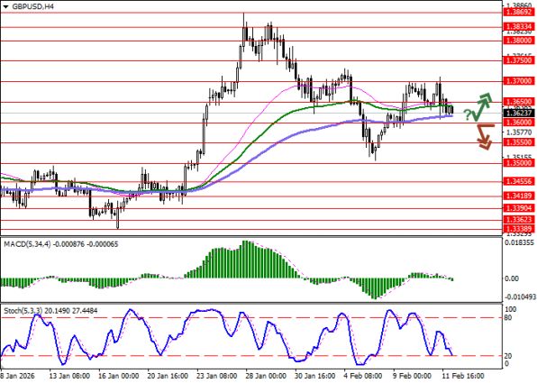 В паре GBP/USD британский фунт демонстрирует умеренное снижение, продолжая нисходящий тренд последних двух торговых дней. Котировки тестируют уровень 1.3620 на предмет пробоя вниз, в то время как трейдеры ждут свежих катализаторов. После январского отчета по занятости в США внимание переключается на данные по ВВП Великобритании за IV квартал, которые выйдут в 09:00 (GMT+2). Эксперты прогнозируют замедление годового роста экономики с 1,3% до 1,2%, хотя квартальный показатель может улучшиться с 0,1% до 0,2%, а месячный — снизиться с 0,3% до 0,1%. Это связано с ослаблением внутреннего спроса и замедлением на рынке труда. Кроме того, промышленное производство, вероятно, покажет спад: с 2,3% до 1,5% в годовом исчислении и с 1,1% до 0,0% в месячном. Если цифры окажутся хуже ожиданий, это усилит давление на фунт и пересмотр прогнозов по ВВП.