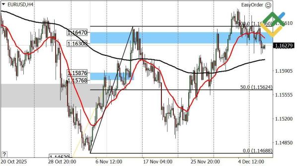 - EURUSD: пара тестирует нижнюю границу нисходящего канала (1.1647–1.1630) — зона критической важности для формирования нового краткосрочного тренда.