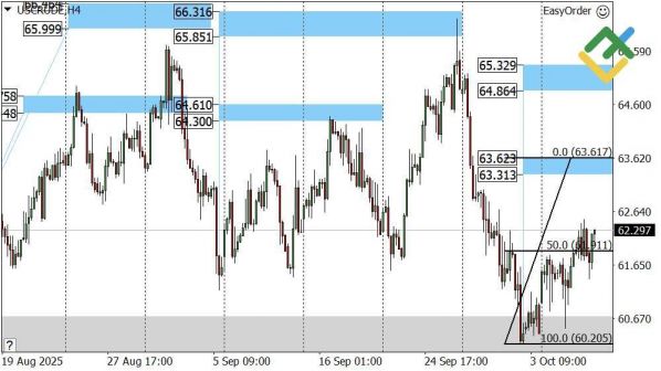 1. Нефть (USCrude): Коррекция к сопротивлению