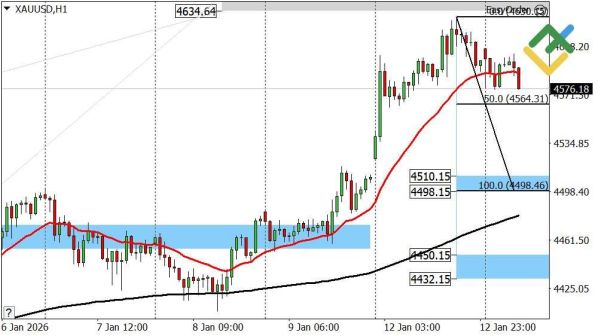 - XAUUSD: после достижения целевой зоны 4670–4634 идёт нисходящая коррекция, покупки актуальны от поддержек A и B.