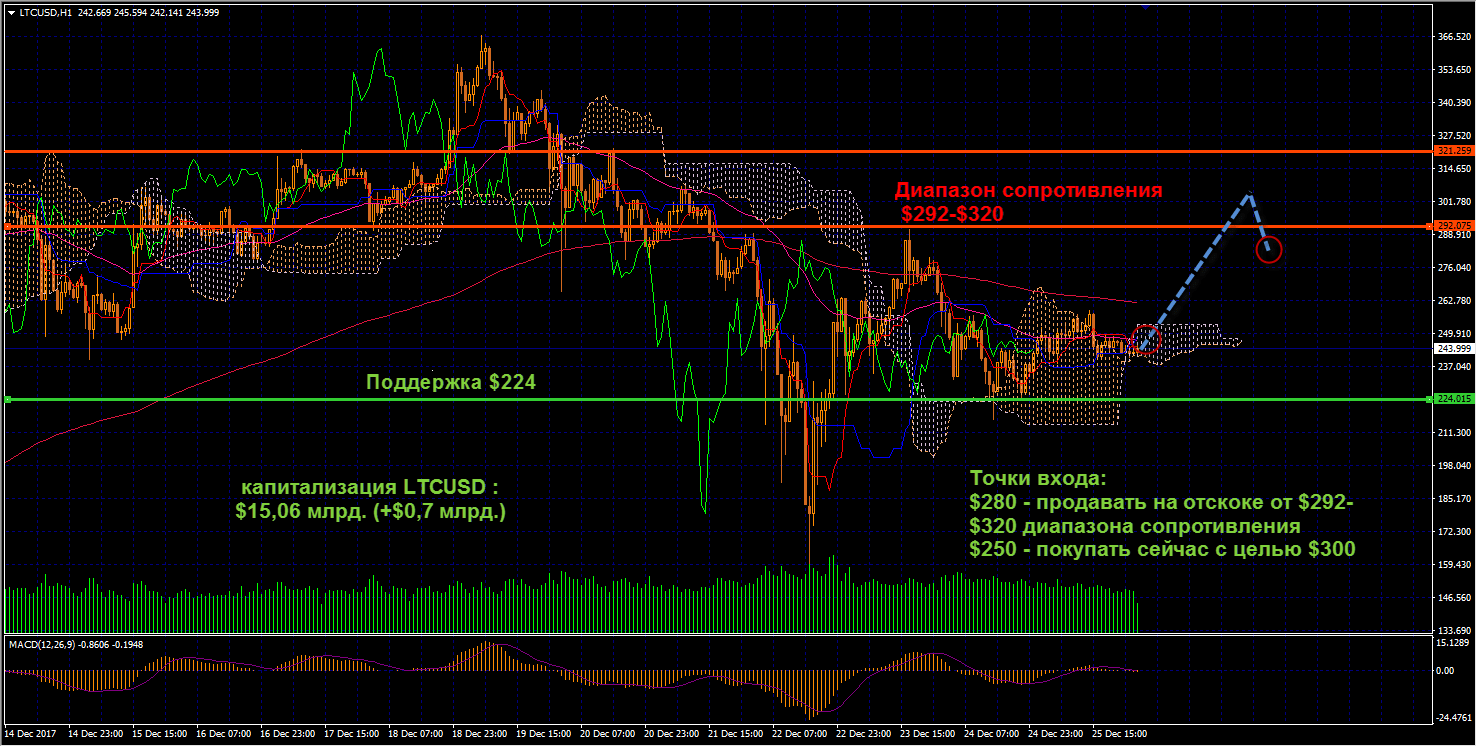 Технический анализ и прогноз LTCUSD 27.12.2017: