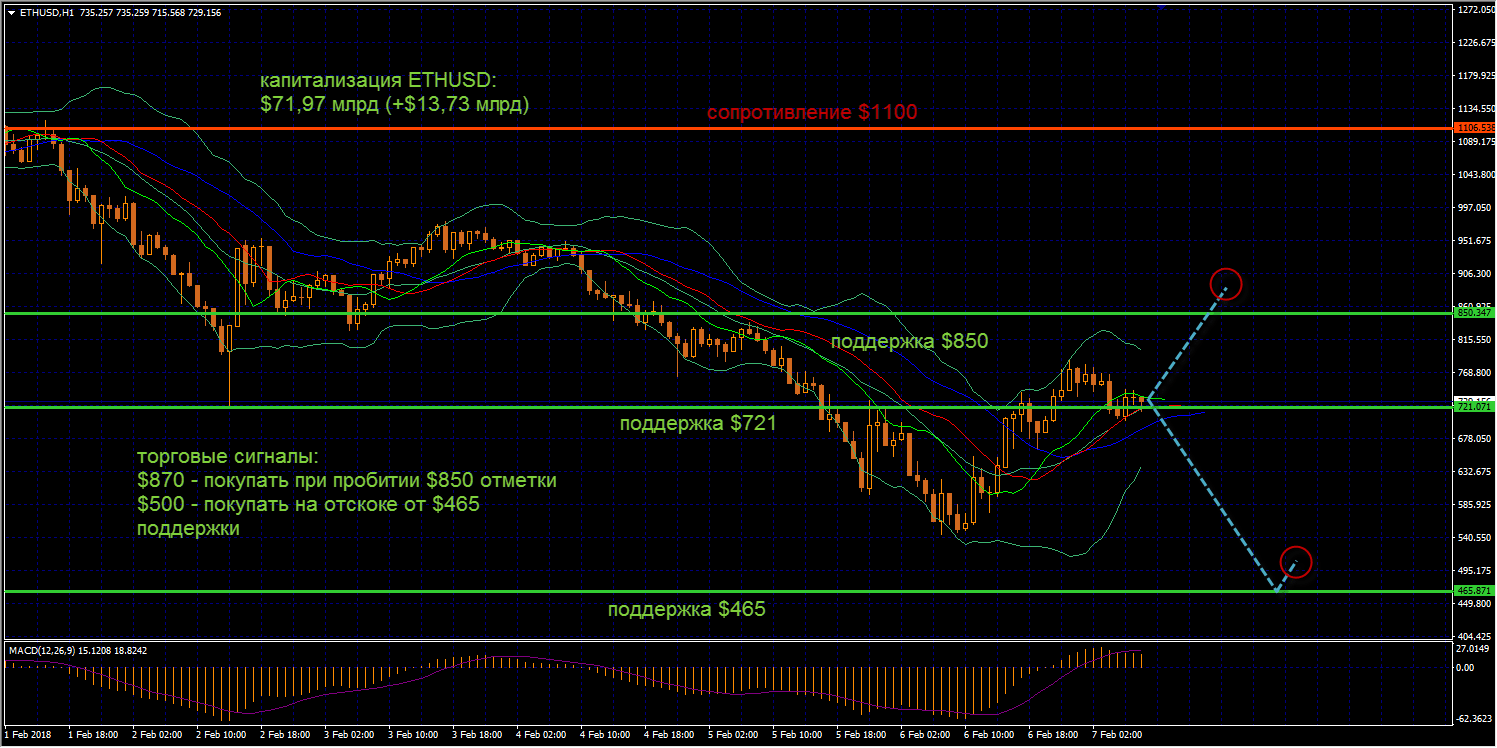 Технический анализ и прогноз криптовалют ефир доллар ETHUSD 07.02.2018