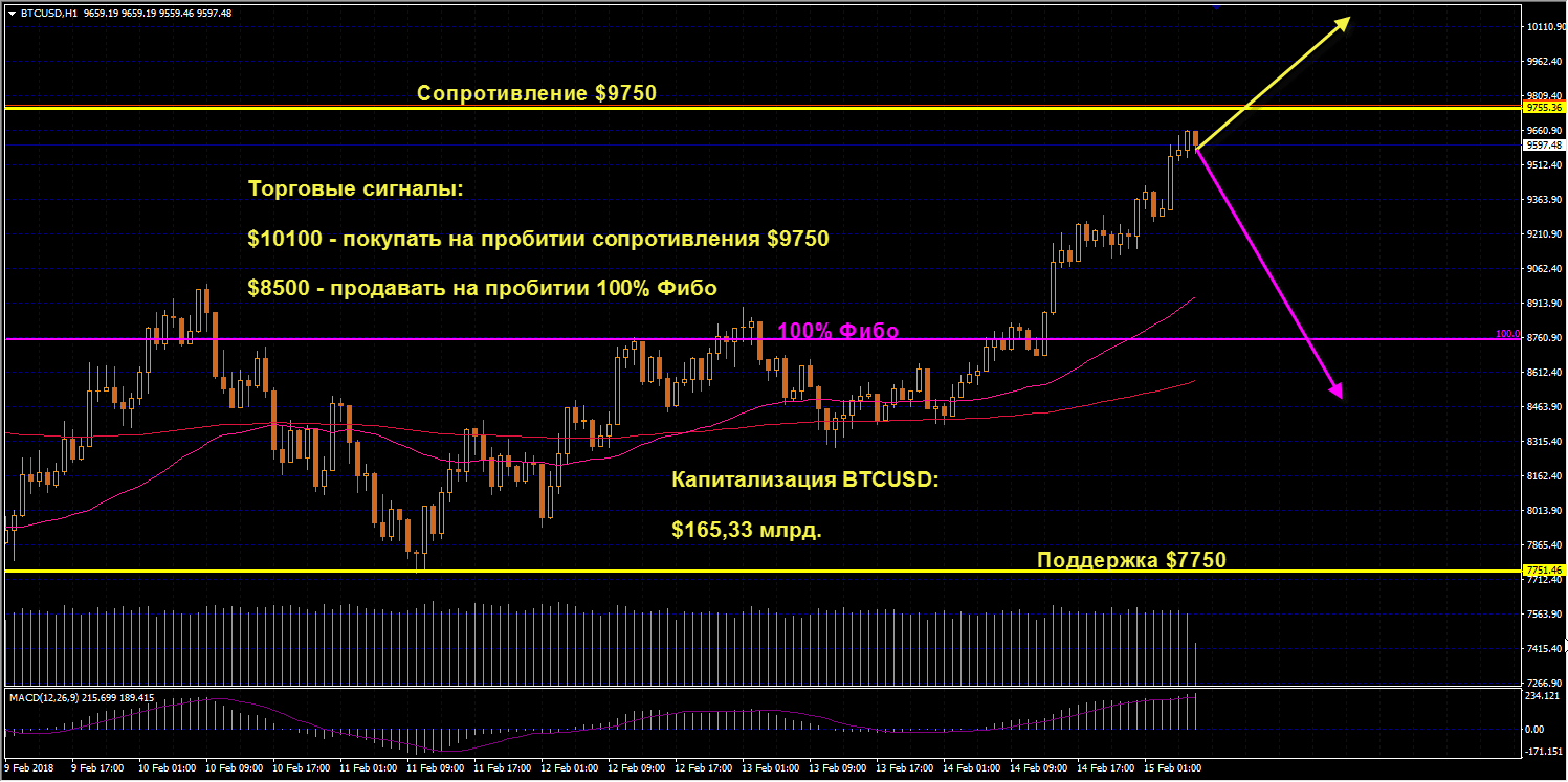 Технический анализ и прогноз криптовалют Bitcoin доллар BTCUSD 15.02.2018
