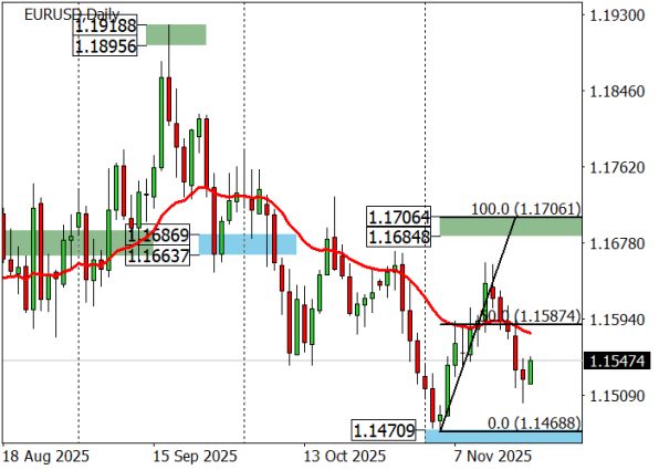 Еврозона, в свою очередь, демонстрирует признаки замедления инфляционного давления. В октябре годовой CPI ЕС снизился с 2,2% до 2,1%, а индекс цен производителей упал до –1,8% (прогноз: –1,9%). Это свидетельствует о слабом внешнем спросе и вынужденной адаптации цен производителей — фактор, который может оказать давление на евро в среднесрочной перспективе.