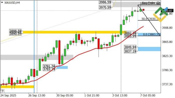 - Золото (XAUUSD): цена достигла целевой зоны 3986–3970.