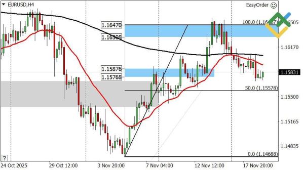 Разворот возможен только в случае уверенного пробоя и закрепления выше 1.1647, что откроет путь к верхней целевой зоне 1.1792–1.1825.