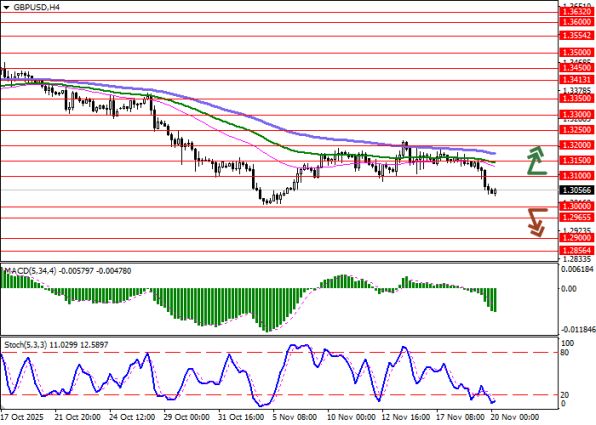 На 20 ноября 2025 года фунт стерлингов демонстрирует устойчивое ослабление в паре GBP/USD, оставаясь вблизи локальных минимумов, зафиксированных в начале месяца. В ходе азиатской торговой сессии пара протестировала уровень 1.3050, при этом активность на рынке остаётся умеренной. Основное внимание инвесторов приковано к публикации сентябрьских данных по рынку труда США, запланированной на 15:30 (GMT+2). Эти данные ранее не были опубликованы из-за рекордного по продолжительности правительственного шатдауна, однако теперь поступят в полном объёме, что может существенно повлиять на настроения на рынке.