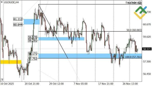 По USCrude: Фокус на покупки от поддержки 58.17 — 57.75 с целями 60.06 и 62.36.