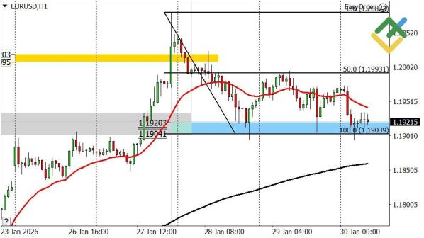 Удержание цены выше 1.1904 сохраняет бычий наклон краткосрочного тренда. В этом случае возобновление роста может направить пару к повторному тестированию 1.1993 и последующему движению к 1.2082. Однако закрепление ниже 1.1904 изменит картину: тренд перейдет в нисходящую фазу с целевой зоной 1.1758–1.1725.