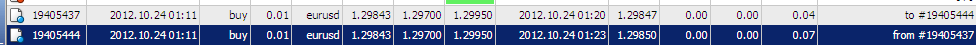 С другой стороны, некоторые советники используют частичное закрытие. Например, используемый мной копировщик контролирует отклонение цены открытия ордера и различие во времени открытия - нижеописанные вещи его просто "сводят с ума". Кстати, это одна из причин, почему я не использую частичное закрытие.