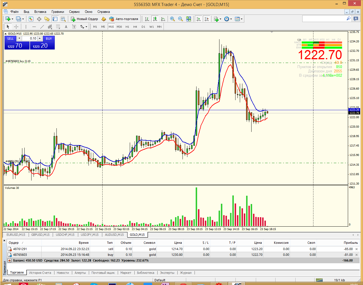 Ну вот примерно типичная стратегия использования лока. Золото ожидалось вниз, естественно зашортил. Но пр непонятным причинам пошло вверх. Пробило уровень 1127, не понятно пойдёт ли дальше или это ложный пробой. Залокировал. Оказалось ложный (пока). Теперь единственный способ разрулить это дождаться движения вниз до прибыли и потом движения вверх опять до прибыли. При волотильности золота этовполне возможно..