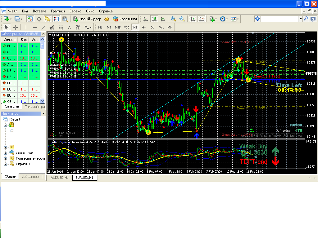 vossonПредпочитаю выбирать для отбоя и отскока уровни на 4-х часовом таймфрейме и на дневном. А если они еще и совпадают, так это вообще замечательная ситуация.