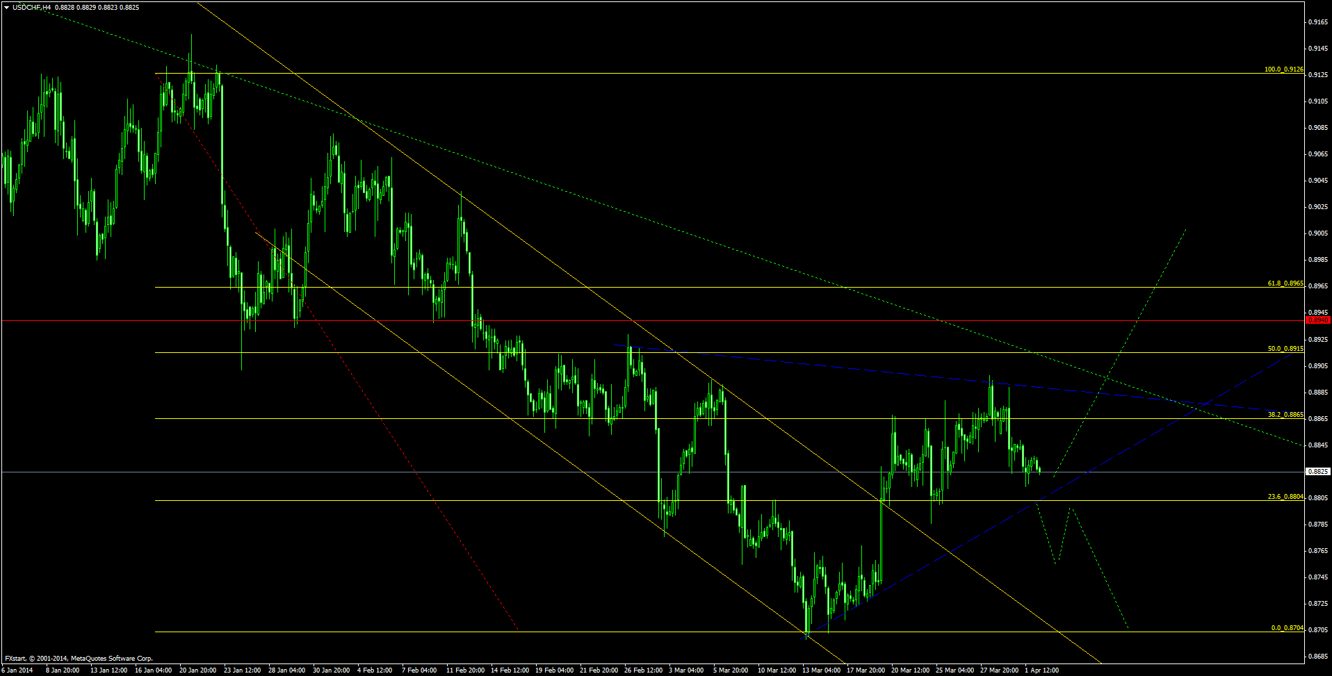 У меня вот такая картина по уровням, трендовую пара не может пробить. Скорей всего рост продолжится, а не падение как в предыдущем посте. |