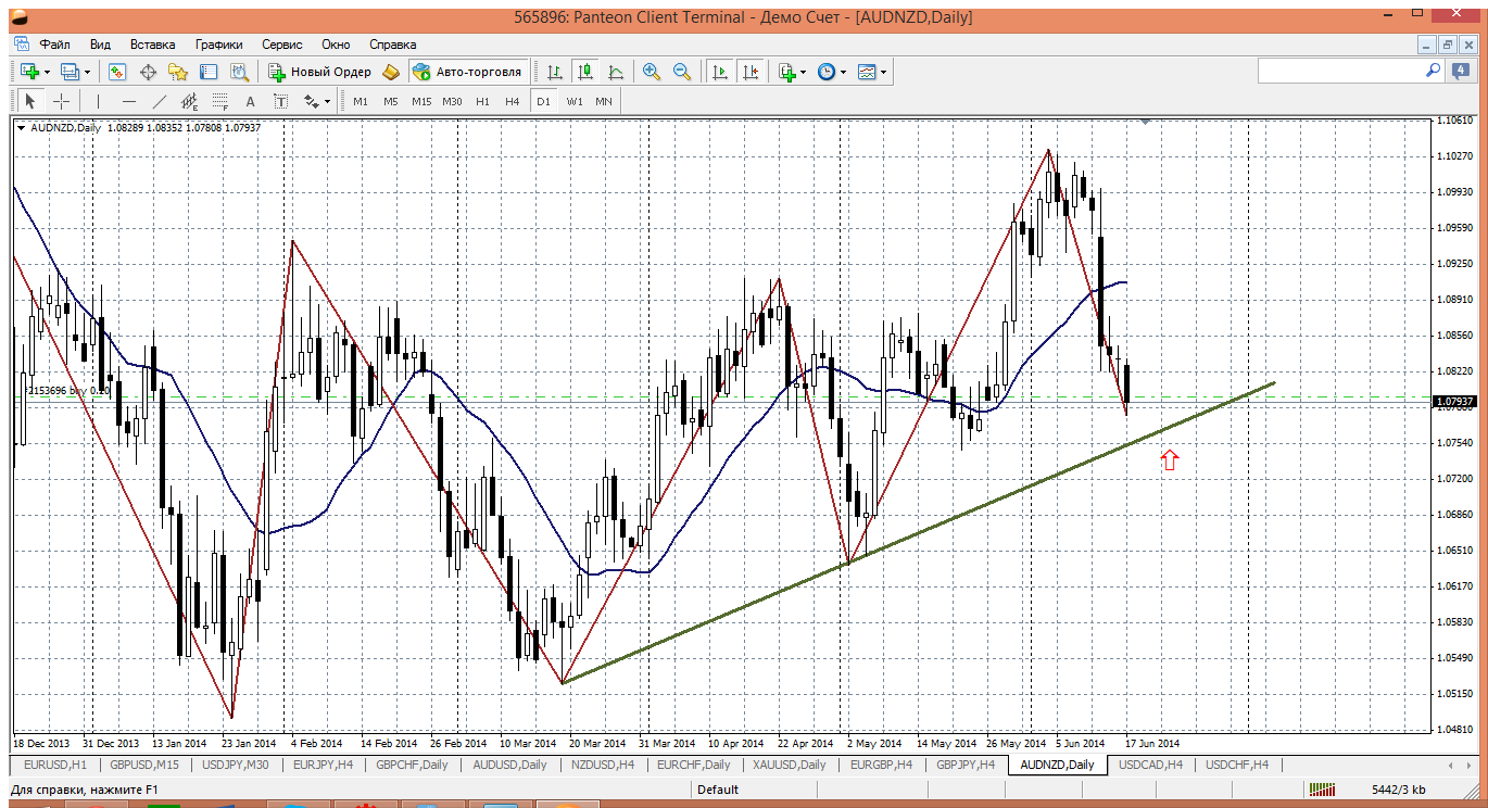 что то уже притомило ждать теста трендовой на дневном графике (сегодня это район 1.0750). Но цена встретила какой то барьер на уровне 1.0820 и довольно долго не могла его пройти. я даже засомневался в возможности теста трендовой и купил на выходе из фигуры 1.08....если что, ниже буду усредняться. Прикрепленные файлы: