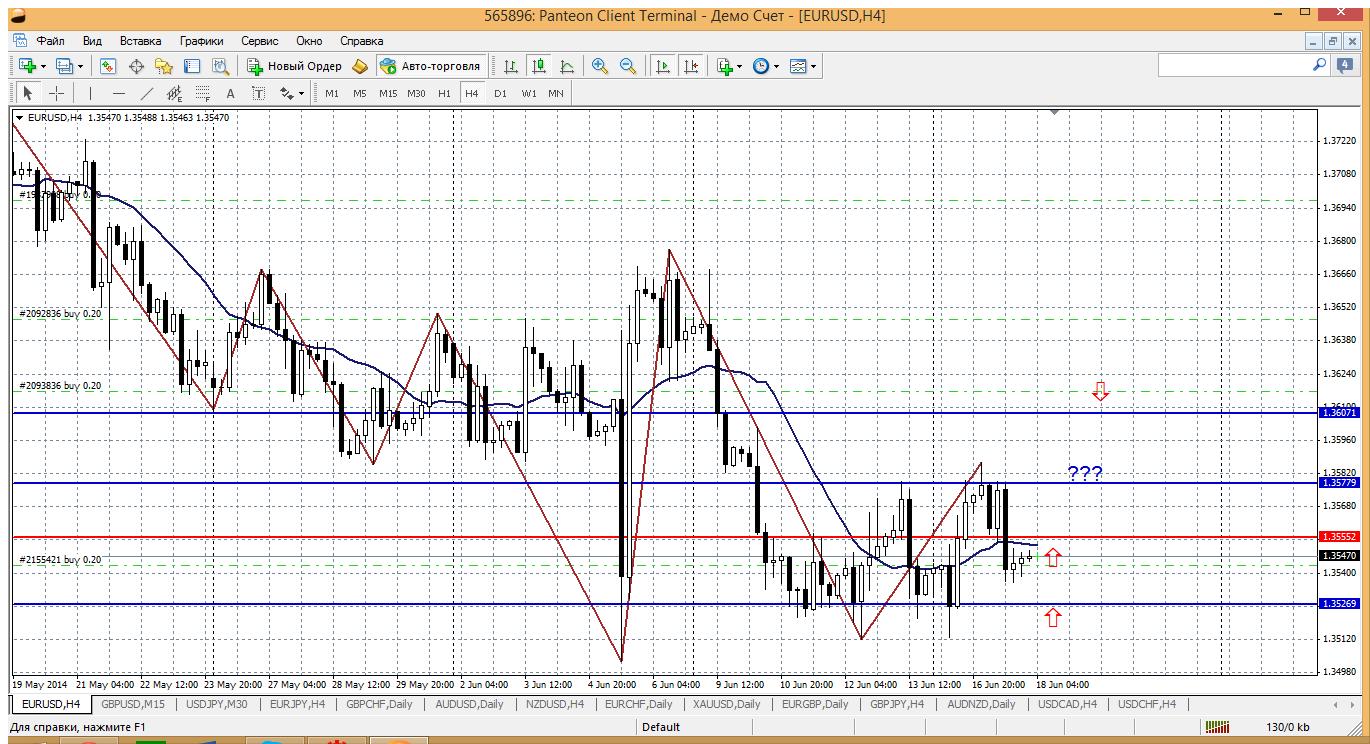 несколько дней, наверное, даже с прошлой недели ждем хотя бы 1.3619 и вчера были все технические предпосылки для этого, но новостной фон остановил рост евры..... а сегодня цена начала день снизу пивота (1.3556) и для роста надо бы преодолеть этот уровень для начала (а там и мувинг на Н4). Получается сделать это будет непросто. Поэтому не исключаю вариант снижения до поддержки 1.3526, где и купить можно попробовать.....а продажи все там же, из фигуры 1.36 Прикрепленные файлы: