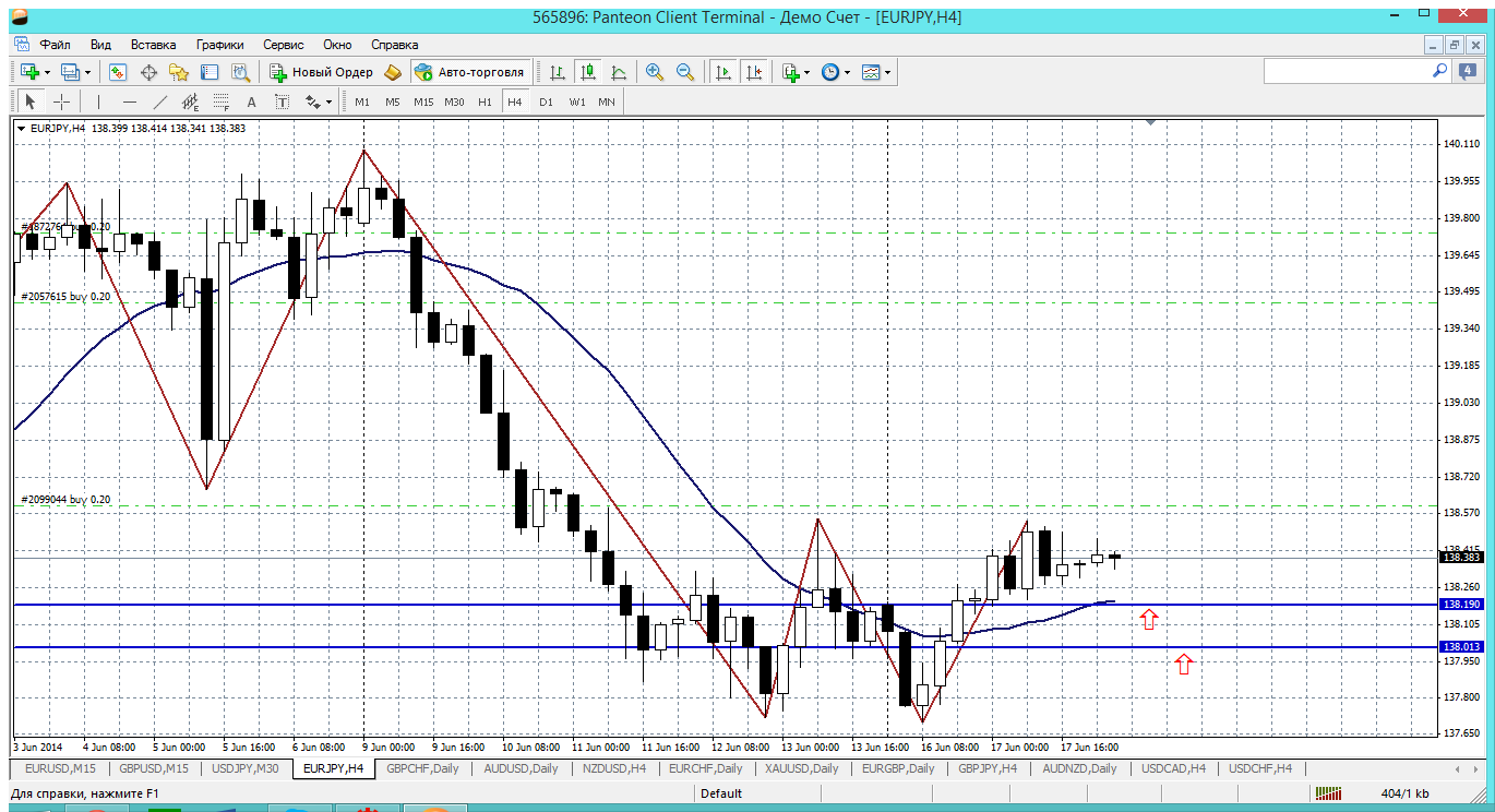 Как не жмут евро-йену на юг,не идет - и все тут. Вон какая свеча за вчерашний день. Тень снизу осталась приличная, а тело все таки "бычье". И сегодня ниже уровня 138.06 - пивот дня не пойдут,от него и покупать можно. Но вот незадача, даже к пивоту не спускаются.... А с текущих как то нет желания. Совсем рядом сопротивление 138.42. От него и откатить могут.... Прикрепленные файлы: