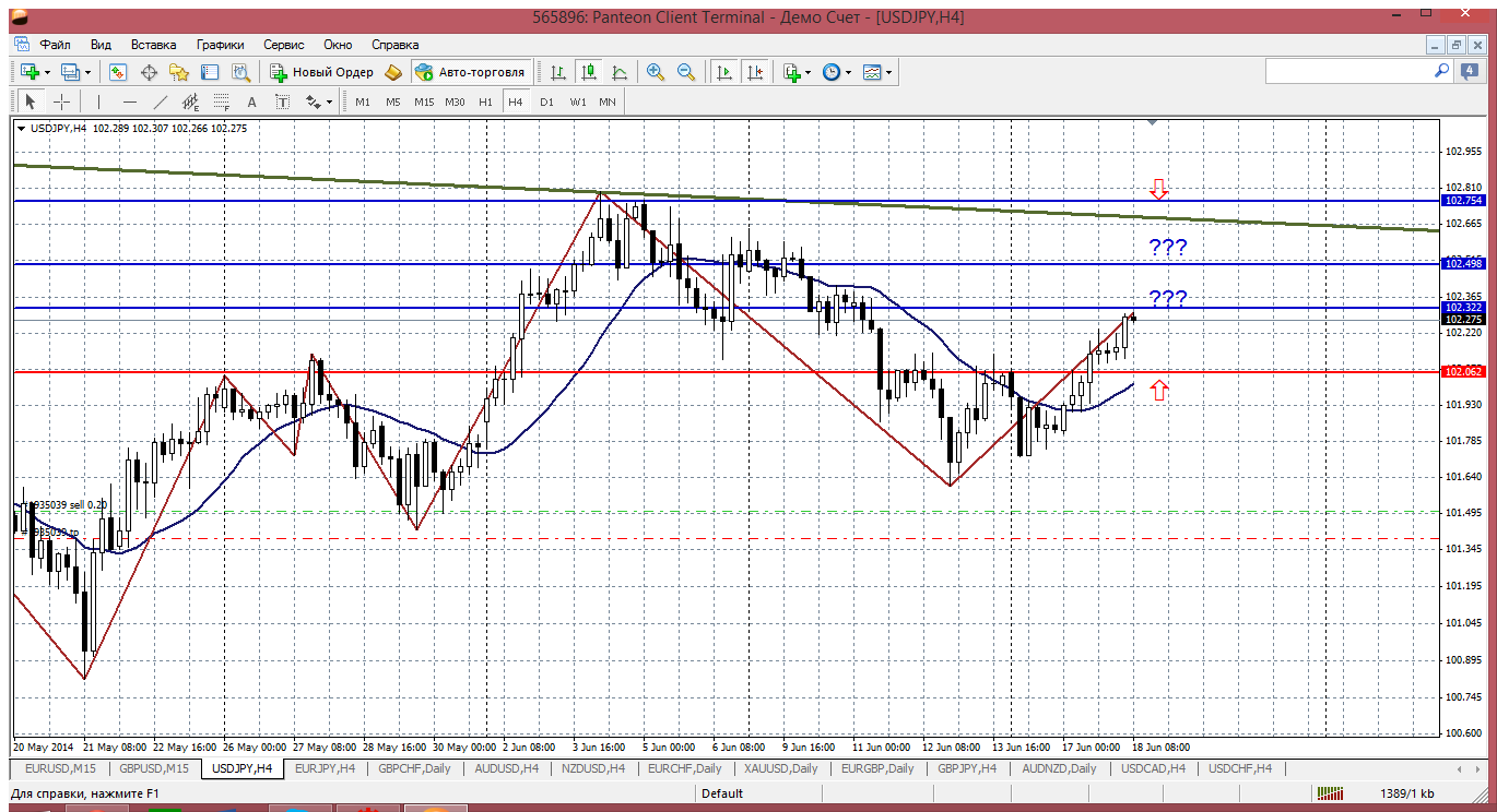 пара явно поменяла свои намерения с южного на северные.... Сейчас цена на подходе к сопротивлению 102.32, а вот продавать точно опасно, лучше подождать откат и с глубины купить. Ближайший серьезный уровень 102.06 (пивот дня), но его можно не дождаться.....а продавать раньше 102.65 не стоит, тест трендовой очень даже вероятен (трендовая на дневке темнозеленая на скрине)... Прикрепленные файлы: