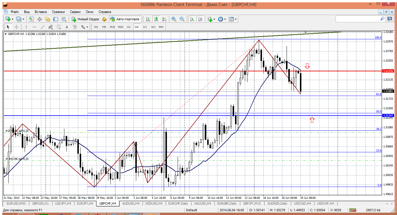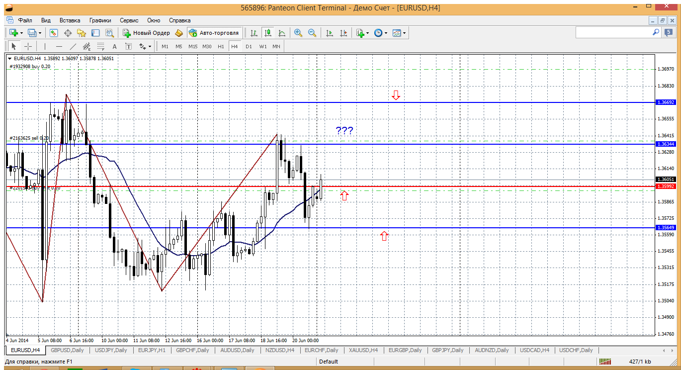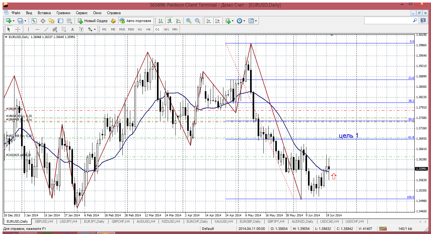 Евра, ближайшие перспективы пары. Хотя многие и ждут как минимум 1.33, то у меня сначала получается коррекционный рост. Только сразу напомню, не смотрю ни в сторону 1.40, ни в сторону 1.30. Так вот цена закрыла неделю на отметке 1.3599, лоу от 05 июня 1.3502 (после безработицы) устоял. Хотя были важные решения ЕЦБ и ФРС. То есть пока ниже цену особо не ждут. А по технике видно, что цена закрепилась выше мувинга (ниже остался длинный хвост, что тоже говорит о предстоящем росте), мувинг разворачивается на север. Получается ждем 1.3693 - ближайший уровень по фибо. А дальше??? потом и посмотрим. Прикрепленные файлы: