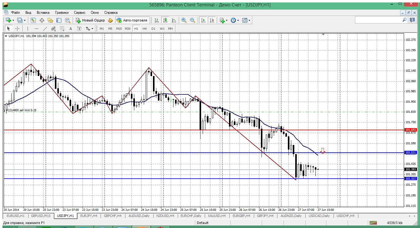 эта пара выбрала себе направление - это здорово. А вот войти в него не получается - это плохо. Вроде как пара направляется к уровню 100.30 (там вроде дневная трендовая проходит). Только вот интересно дадут заработать в этом движении? А то идут без откатов и коррекций. Вон вчера ждал возврата хотя бы к пивоту, но его (возврата) и не было. Сегодня с утра начали движение от пивота 101.69 и один за другим прошли две поддержки (101.51 - 101.31), и никаких откатов....странно. Вот и сейчас вернулись бы к 101.52 - там и продать вполне можно. Прикрепленные файлы: