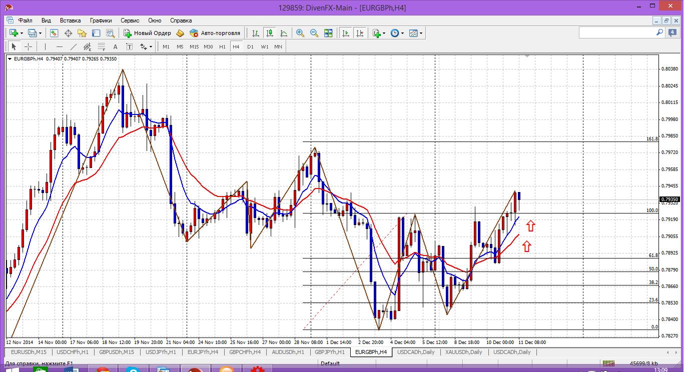 Пара на н4 явно тоже выражает желание продолжить рост (на Н1 подобную картину уже давно наблюдаем). И цели этого роста в районе 0.7980, примерно там. Туда выходит цель по фиборасширению (161.8%), да и последний локальный максимум (вершинка на Н4) тоже в том районе. Это так. А вот купить? Нужен откат к мувингу 0.7905 и от него купить. Или хотя бы от 0.7919, но это значительно рискованнее.... Прикрепленные файлы: