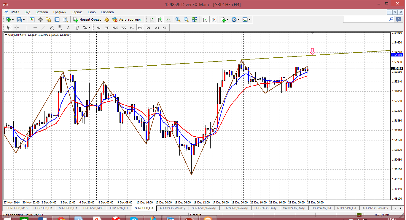 Эту пару пытался продавать, как только она вошла в фигуру 1.53. Но никаких прибылей от этой позиции что то не дождался, хорошо, что хоть дала уйти с безубытком. Значит такой высоты для продажи не достаточно. Значит будем ждать следующей фигуры - 1.54. Тем более, что на отметке 1.5418 сегодня расположилось серьезное сопротивление внутри дня и через этот уровень практически проходит дневная трендовая. Посему продажи по этой цене выглядят практически безопасными. Прикрепленные файлы: