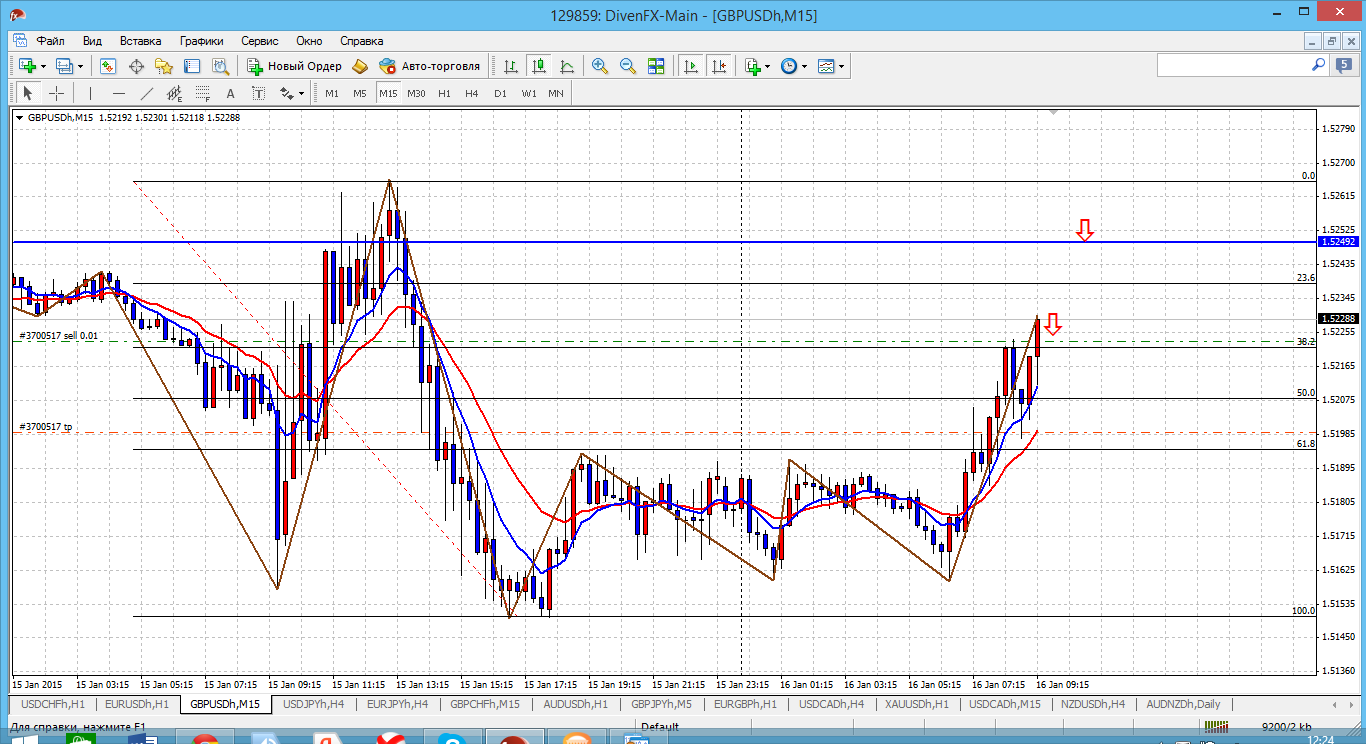 а фунт, единственная пара, которая сегодня абсолютно не поддался всеобщей истерии, которая была на рынке сразу после оглашения решения нац. банка Швейцарии. Пара (я про фунт) осталась в пределах вчерашнего торгового диапазона. При этом ни верхняя, ни нижняя граница так и не были протестированы. А если все аки вспомнить всякие подходы по ТА, то при откате в район 1.5207 вполне продажи логично смотрятся. Прикрепленные файлы:
