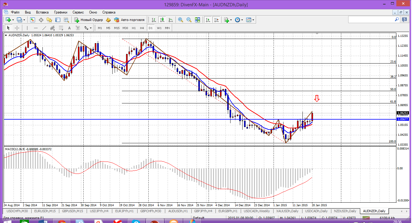 По этой паре, помнится, уже несколько дней в качестве ориентира отслеживали уровень 1.0570 (последняя вершинка на зиг-заге), выше которого не могли пройти аж с 13 января. А без его прохождения, говорить, что начался период коррекционного роста, на мой взгляд, было несколько преждевременно. Теперь вроде как день закроют выше (не думаю, что грохнуться за это время до закрытия дня) и теперь вполне можно искать возможности для покупки. Направляемся в фигуру 1.07 и даже выше. У меня так получается. Прикрепленные файлы: