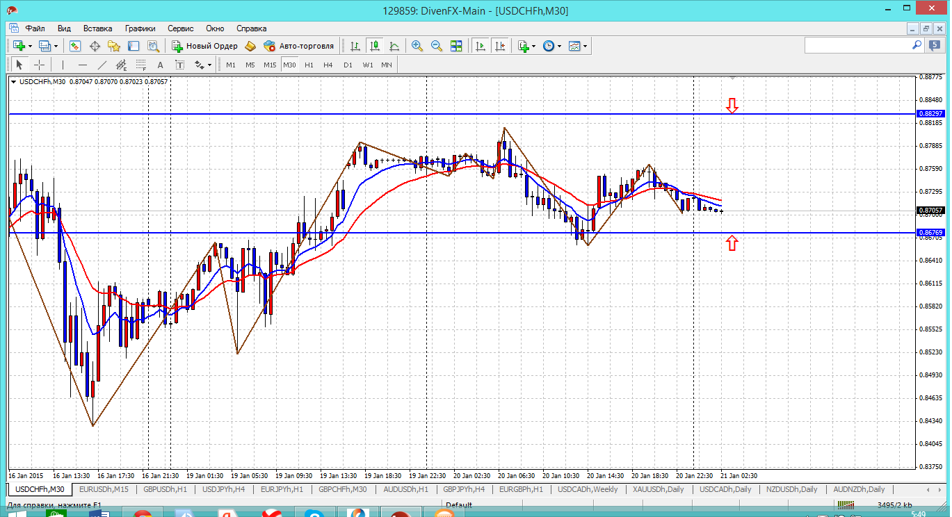 Хотя многие ДЦ еще не начали торги парами, где присутствует швейцарский франк, я же думаю, что уже можно присматриваться к этой паре. Вот вот и торги по ней будут возобновлены. У пары на сегодня в работе следующие важные уровни: сопротивление 0.8829 и поддержка 0.8676. И если на сопротивление можно и не оращать внимания, то от поддержки вполне вероятен рост. У меня так получается. Прикрепленные файлы:
