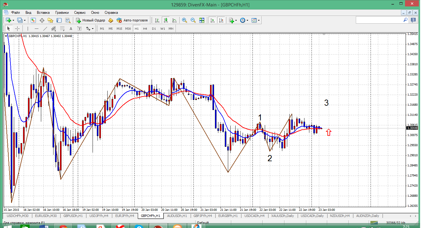 Если на европейских мажорах, вернее на их графиках, вчера сложно было увидеть что то техничное и вменяемое, то ФФ внутри дня вчера как по учебнику нарисовал формацию на 1 - 2 - 3. И если волны 1 и 2 просто классические, то с волной 3 уже е все так красиво. Получается что то растянутое и сложное. Но цена уже пробивалась выше уровня пивот 1.3048 и находится выше мувинга. Поэтому предпочтительнее выглядит продолжение роста. Прикрепленные файлы: