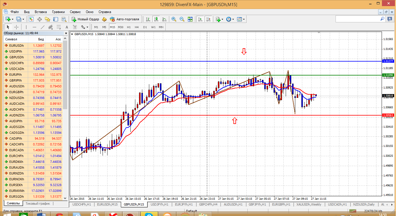 Уж от кого кого, но от фунта я сегодня ждал и более серьезной волатильности и более вменяемой техничности. Как никак день выхода отчета по ВВП страны, но... как частенько бывает в последнее время движение цены бывает более стремительным на ожиданиях, на слухах, чем на реально вышедших фактах. Вот и сегодня фунт даже не протестировал ни одного из ближайших уровней. Только 1.5109.... но это из вчерашних планов. Прикрепленные файлы: