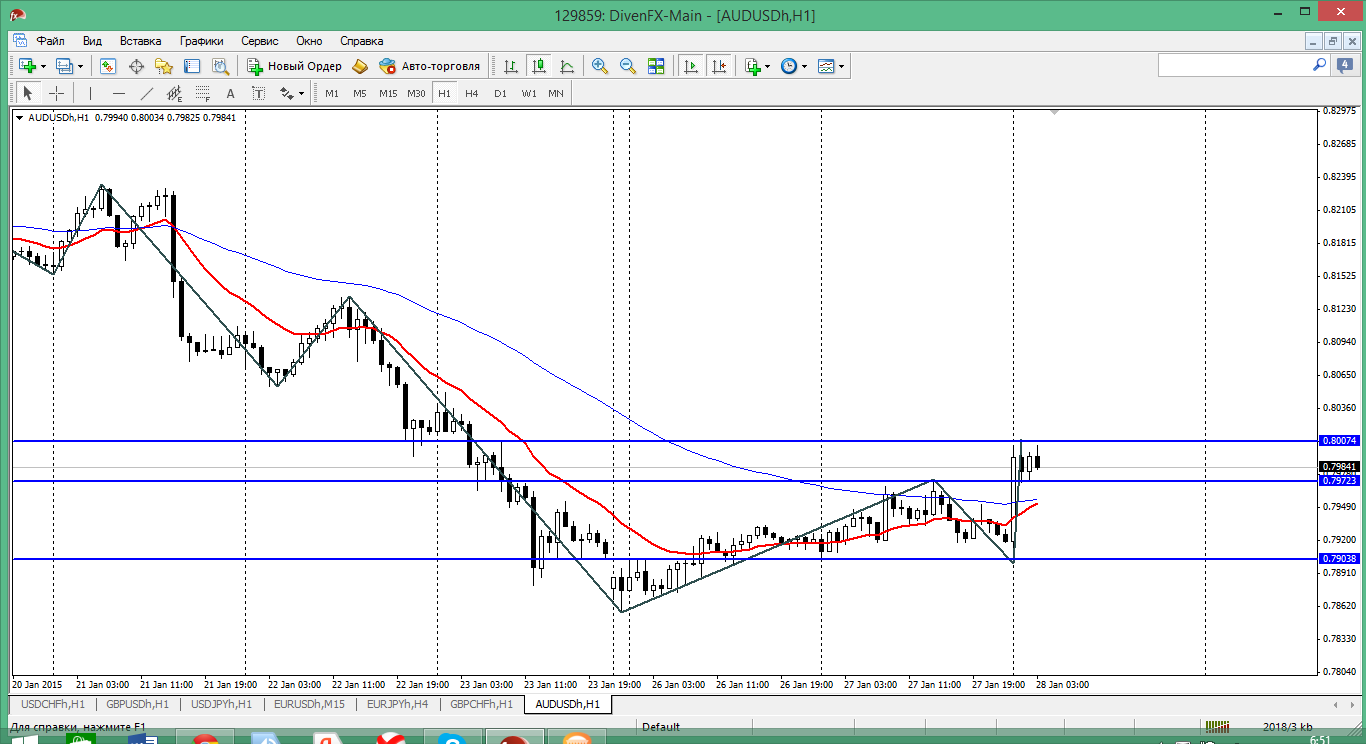 А вот по этой паре, есть желание, высказать свое мнение об общей ситуации, а не с точки зрения открытия конкретной позиции от конкретного уровня. Так вот когда цена вывалилась из дневного канала вставать в покупки было как то совсем не комфортно. Уж очень на тот момент бодро рос американский доллар. Сейчас вроде как та ситуация несколько ослабела и по НЗД видно,что дальше вроде как и не собираются снижаться. Сейчас вполне обоснованно ждать возврата к границе канала - 0.75 и это как минимум, а могут вернуться и к мувингу, а это уже 0.76. Прикрепленные файлы: