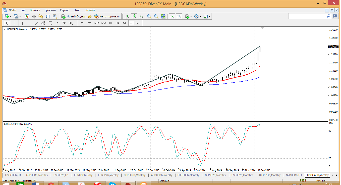 В терминале у меня месячный график заканчивается 2012 годом, и канадца в этом периоде на текущих уровнях не было. Посмотрел на других ресурсам и увидел, что цена на таких высотах была в 2009 году, в марте месяце. И при этом, ближайший уровень, который способен остановить текущий фантастический рост - это 1.3063 - максимум того периода (2009 г). Все это так, но вот покупать по текущей цене (1.2720) явно не стоит. Прикрепленные файлы: