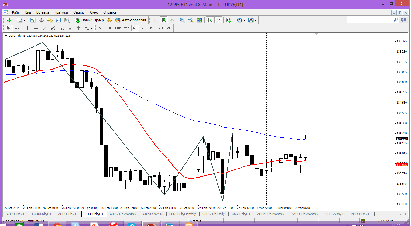 Сегодня цена нашла некое дно на уровне 133.87, где расположился пивот дня. Если честно,то для меня несколько удивительно, что ЕЙ не продолжила снижение вместе с евромажором. Ведь в пятницу она (евро-йена) шла именно за еврой, а не за йеновыми парами. Поэтому сегодня и планировал покупки, но несколько ниже - от 133.49 или даже от 133.05. Видать не судьба. А вот продаж что то даже не рассматриваю. Прикрепленные файлы: